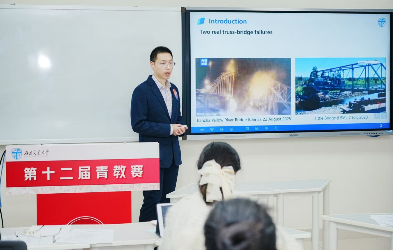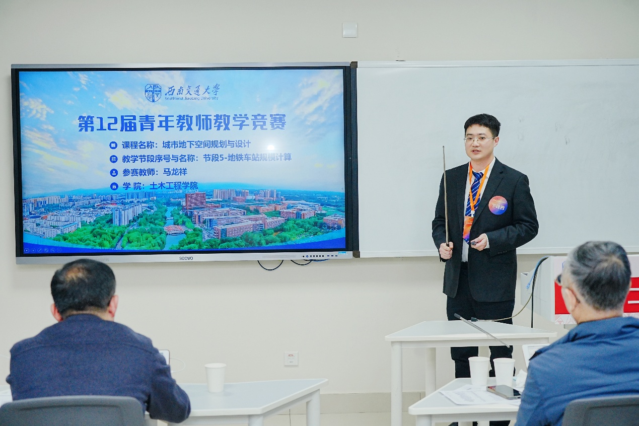 11月27日,太阳集团tyc234cc第十二届青年教师教学竞赛决赛在犀浦校区三号教学楼举行。经过院级初赛与校级复赛的层层选拔,共有89名教师晋级决赛。我院青年教师不负众望,凭借扎实的专业功底、精湛的教学技艺和饱满的育人热情,在学校决赛中表现亮眼,学院获奖教师人数与获奖等级均实现新的突破:道路与铁道工程系颜川奇老师、建筑工程系周强老师荣获一等奖;地下工程系姚超凡老师、张霄老师,桥梁工程系朱金老师荣获二等奖;地下工程系马龙祥老师荣获三等奖。学院党委书记郑江,工会主席王艺霖对赛场进行巡视,并进入课堂观摩教师授课。