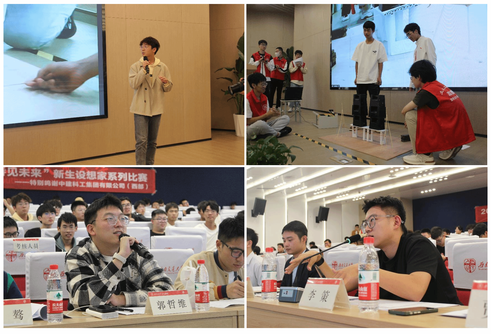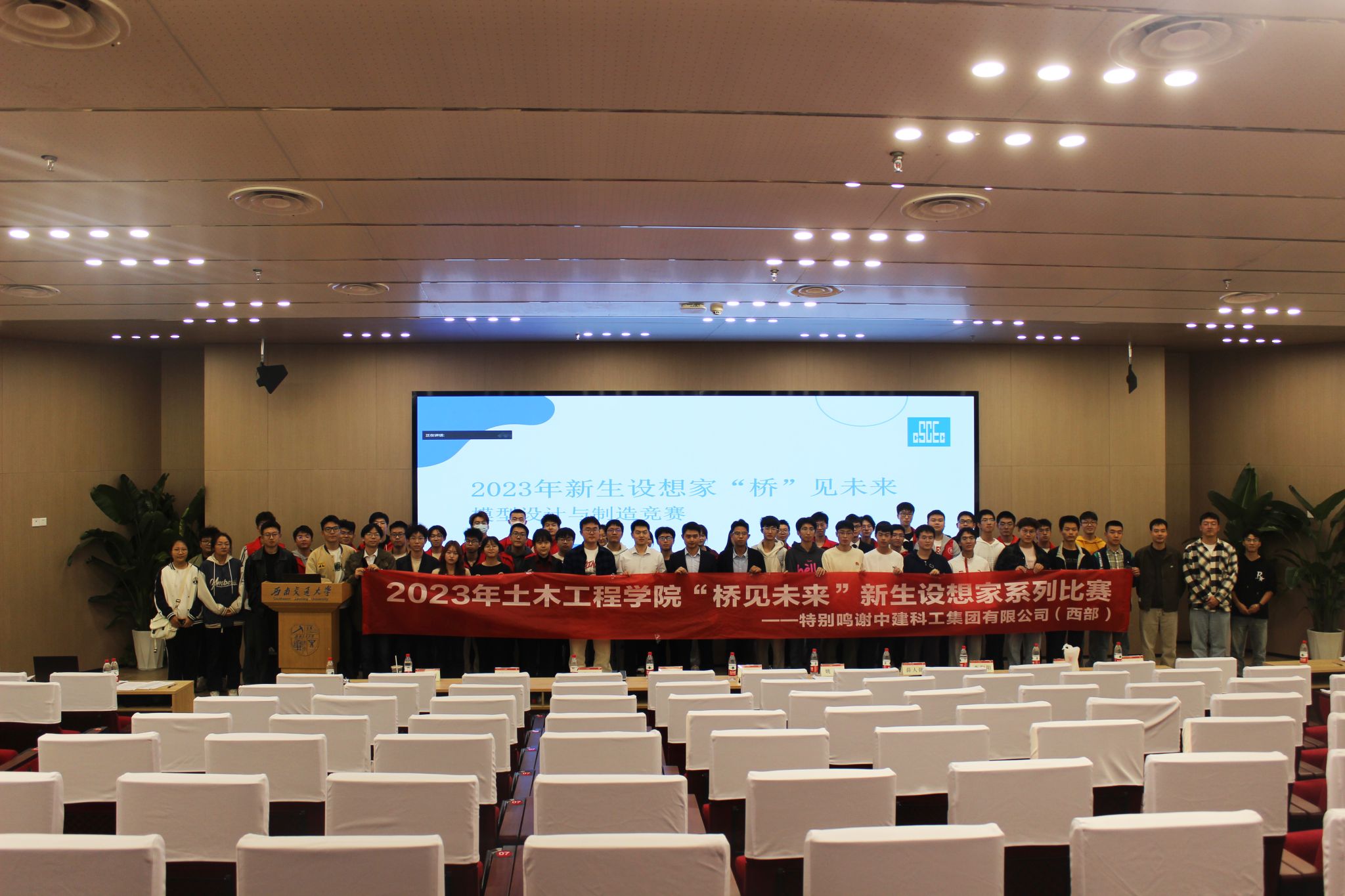 2023年11月5日13时30分,由共青团太阳集团tyc234cc委员会、太阳成tyc234cc主办,太阳成tyc234cc大学生科创中心承办的2023年太阳成tyc234cc“桥见未来”新生赛决赛在我校犀浦校区图书馆二号报告厅举行。中建科工四川公司天科创智项目总工程师、学院青年讲师团成员张炳宏,中建科工集团四川公司人力资源管理部人力专员姚军,学院辅导员老师李江怀,薛人铭,谢宇清,贾璇琦,李策,郭哲维,李阳阳出席决赛现场。