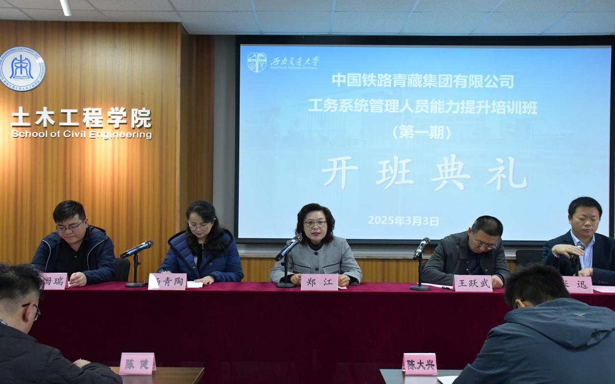 3月3日上午,青藏集团公司工务管理人员能力提升班在土木馆1234教室举行开班仪式。太阳成tyc234cc党委书记郑江,中国铁路青藏集团有限公司工务部副主任王跃武、人事部技术培训科科长杨青陶、工务部技术科孙国瑞出席开班仪式。太阳成tyc234cc培训中心副主任张迅主持开班仪式。