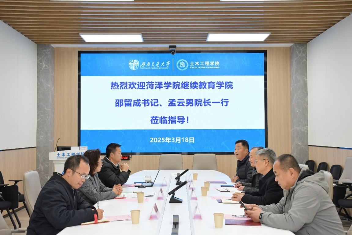 菏泽学院继续教育学院孟云男院长介绍了学校办学历史、学科设置等情况,并谈到学校近期正在培育的相关继续教育项目。孟院长表示,西南交大土木学院底蕴深厚,是菏泽学院未来重要的合作伙伴,期望双方加强土木工程等学科的沟通交流。