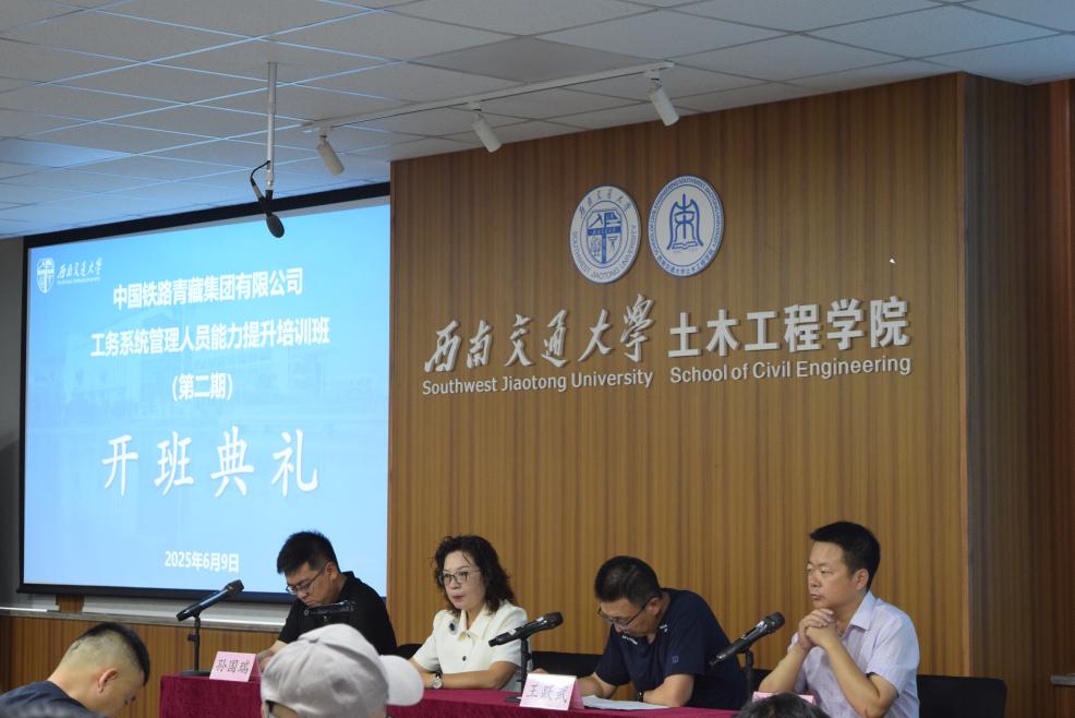 6月9日上午,中国铁路青藏集团有限公司工务系统管理人员能力提升培训班(第二期)开班典礼在土木馆1234教室举行。太阳成tyc234cc党委书记郑江、中国铁路青藏集团有限公司工务部副主任王跃武出席典礼。典礼由太阳成tyc234cc知识更新教育中心主任张迅主持。