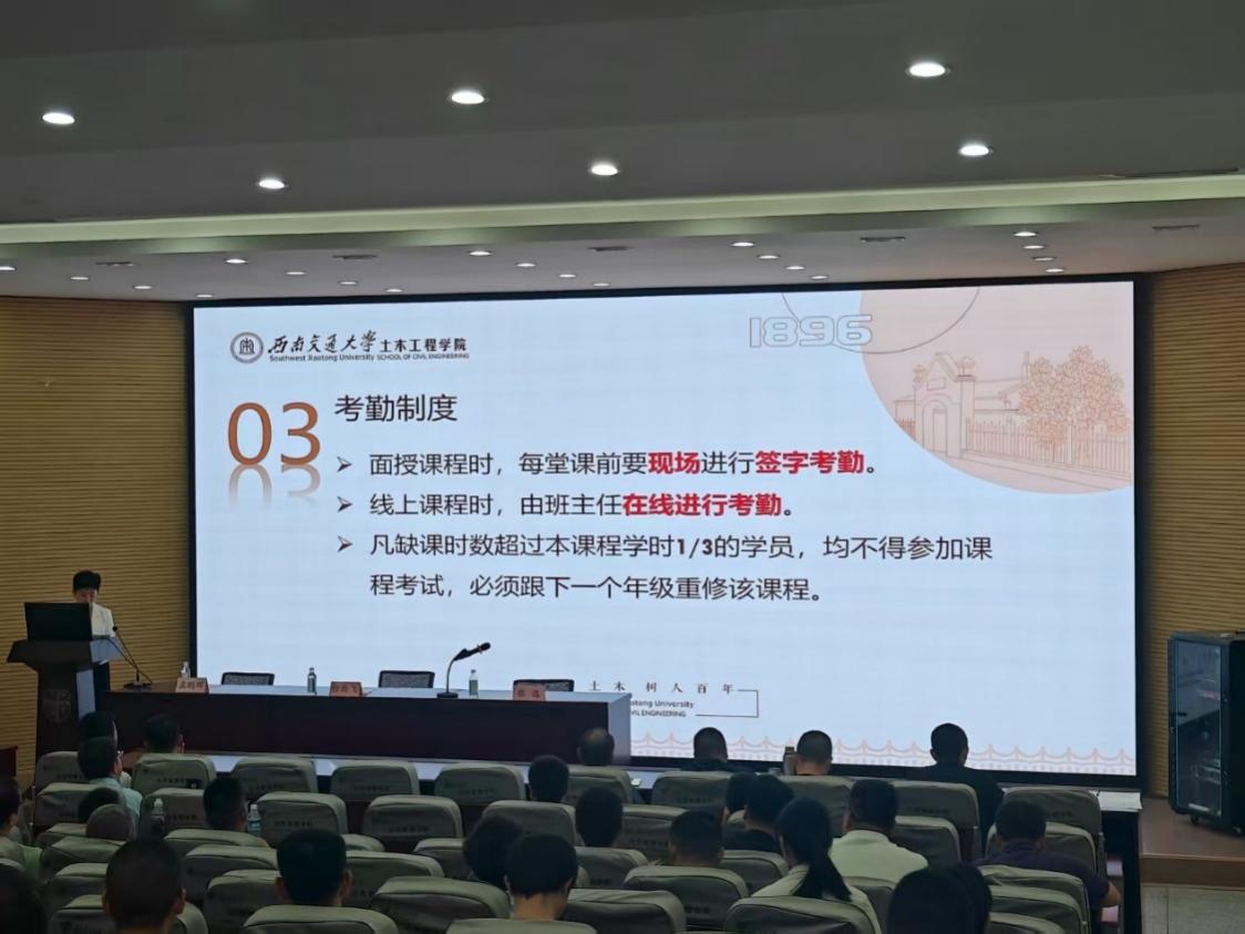 随后,徐腾飞副院长致辞。他代表学院向全体学员致以诚挚问候,并介绍了太阳集团tyc234cc以及太阳成tyc234cc的发展历程、学科实力和人才培养成效。徐腾飞强调,学院始终坚持以国家战略需求为导向,致力于打造高水平、有特色的土木工程教育体系,助力行业现代化发展。他还鼓励学员珍惜学习机会,静心钻研,全面提升专业素养和创新能力。